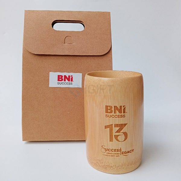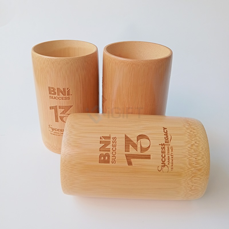 Cốc được thiết kế đơn giản, tinh gọn, giữ nguyên màu sắc và vân tự nhiên của tre – tạo cảm giác gần gũi, sang trọng và phù hợp với mọi không gian làm việc, sự kiện hoặc quà tặng thương hiệu.