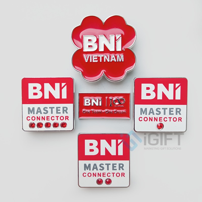 Huy hiệu cài áo kim loại đóng gọn nhẹ, sang trọng và có giá trị lưu giữ lâu dài. iGIFT cung cấp giải pháp sản xuất huy hiệu kim loại theo yêu cầu với tiêu chuẩn dành riêng cho các nhãn hàng lớn, đảm bảo mỗi chi tiết đều chính xác với bộ nhận diện của doanh nghiệp.