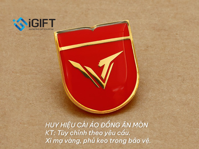 Huy hiệu cài áo mạ vàng, mạ bạc phủ keo là dòng huy hiệu kim loại cao cấp được thiết kế chuyên biệt cho nhu cầu nhận diện thương hiệu doanh nghiệp, vinh danh cá nhân, và quà tặng sự kiện. Sản phẩm được đúc khuôn kim loại nguyên khối, sau đó xi mạ vàng hoặc mạ bạc để tạo độ sáng bóng sang trọng. Điểm khác biệt nằm ở lớp phủ keo trong suốt trên bề mặt, giúp bảo vệ màu sắc, hạn chế trầy xước và giữ cho logo luôn sắc nét theo thời gian.
