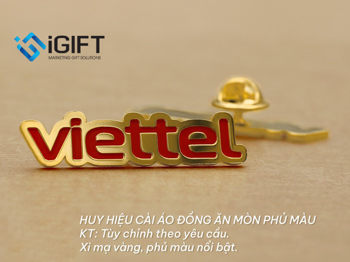 Huy hiệu cài áo mạ vàng phủ màu được sản xuất bằng công nghệ ăn mòn kim loại trên đồng nguyên chất, bề mặt xi mạ vàng, phủ màu theo thiết kế. Sản phẩm mang tính nhận diện thương hiệu rõ ràng, bền màu, sang trọng, phù hợp cho sự kiện, đồng phục công ty hoặc làm quà tặng doanh nghiệp. Gia công tỉ mỉ – giao hàng đúng tiến độ – nhận thiết kế theo yêu cầu.
