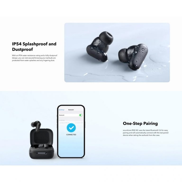 Tai nghe Anker Soundcore TWS R50i NC là một sản phẩm đáng chú ý trong danh mục tai nghe không dây, nổi bật với nhiều tính năng nổi trội. Dưới đây là những điểm nổi bật của sản phẩm này: