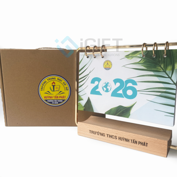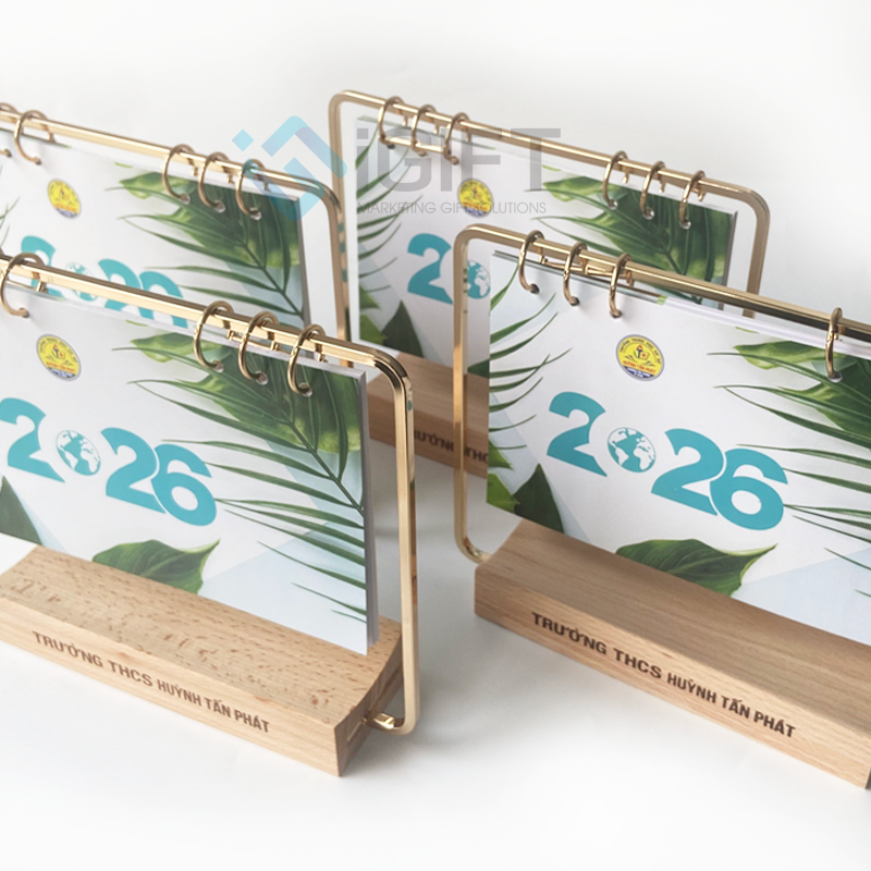 iGIFT cung cấp dịch vụ sản xuất và gia công lịch để bàn đế gỗ theo yêu cầu, hỗ trợ khách hàng từ khâu thiết kế, in ấn, khắc logo đến đóng gói hoàn thiện. Với MOQ từ 200pcs, doanh nghiệp có thể tùy chỉnh chất liệu, kích thước, màu sắc, kiểu dáng và bao bì theo nhận diện thương hiệu riêng.