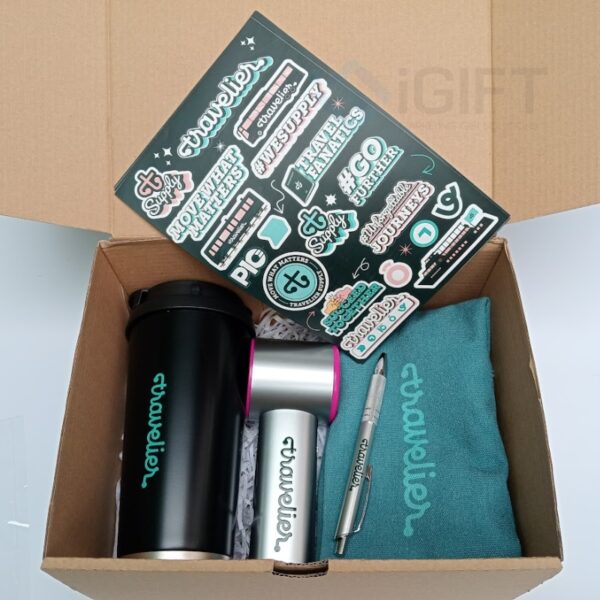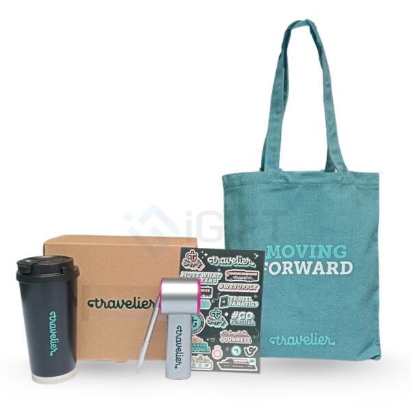 Quạt cầm tay phù hợp môi trường làm việc, sự kiện hoặc di chuyển ngoài trời. Bút bi và sổ bìa da hỗ trợ công việc hằng ngày, thể hiện sự chỉn chu và chuyên nghiệp. Túi canvas gợi tinh thần bền vững, thời trang, dễ mang theo khi mua sắm hay đi làm. Ly giữ nhiệt lại hướng đến phong cách sống hiện đại, quan tâm sức khỏe và tiện lợi. Tất cả được đặt trong hộp giấy kraft in logo, tạo tổng thể trang nhã, sang trọng và đồng bộ.